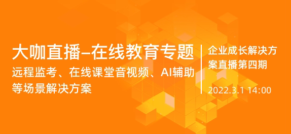 本次直播,我们将围绕“技术+内容”组合的在线职业教育、AI辅助管理、远程监考场景、在线课堂音视频等主题,帮助教育行业客户进行在线化、智能化的场景落地。